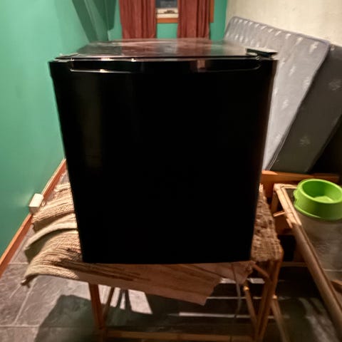 Selger et svart malt Kelvinator kjøleskap. Veldig bra kjøleskap fra rett tid! Insiden er rosegull og har en liten fryseboks som vanlig på retro kjøleskap fra USA.