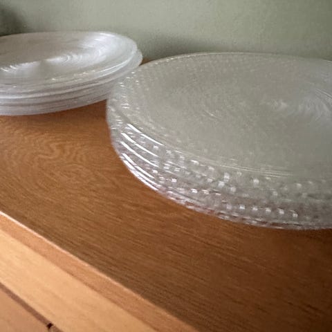 Hadeland Glassverk glass tallerkener i klart glass med teksturert mønster.