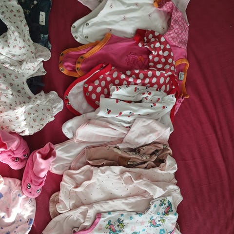 Innholdsrik klespakke i str 68. Mye fint tøy, som kan brukes videre :). Noe bomull, noe hjemmestrikket, og noe ull. Klespakken inneholder 2 sparkebukser, 8 sett med body og bukser, 9 pysjer, 1 jakke, 7 kjoler, 13 bodyer, 6 bukser, hårbånd, luer, solhatter, votter, og strømpebukser +++ Merker som Lil’Atlier, name it, joha, Newbie, Bella bambini, Gullkorn, H&M, Reflex, Hummel, KappAhl, Cubus og Lindex. Tøyet har ingen skader eller flekker, og leveres nyvasket.