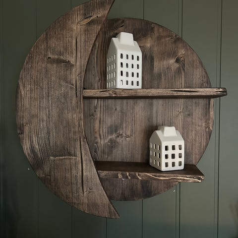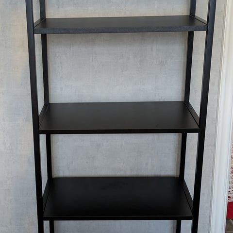 Selges pga omgjøring og ikke lenger behov for hyllen. Obs; hyllen er stødig og har hatt flere tunge vaser og annet interiør på, men den vingler noe når man dytter den fra siden med mindre man fester den i veggen. I følge monteringsanvisning skal man feste hyllen i veggen, men dette hadde jeg ikke behov av. Jeg har derfor ikke skruen som fulgte med til det. Har du barn eller dyr i hus anbefaler jeg at du sikrer den ved å skru den i veggen med en vinkel eller lignende.