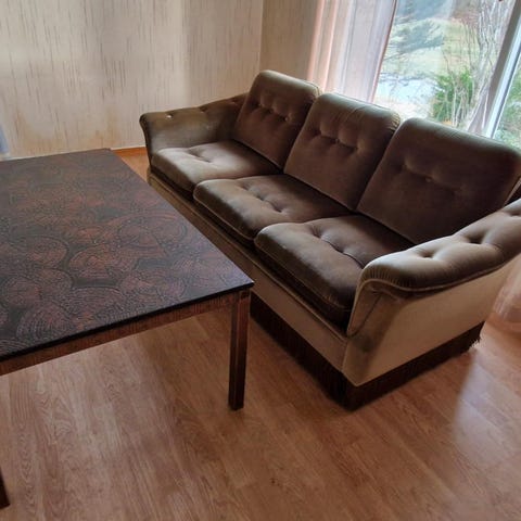 Sofagruppe, bord og teppe gis bort ved henting snarest