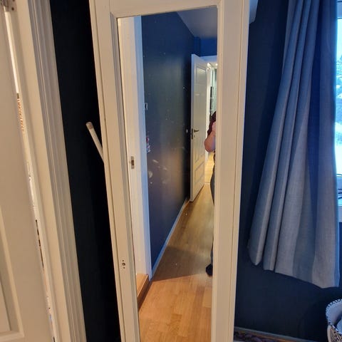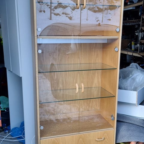 Skap til å ha over vaskemaskin gis bort mot henting. Noen beis-flekker øvrest på skapet(se bilde), ikke forsøkt vasket bort.