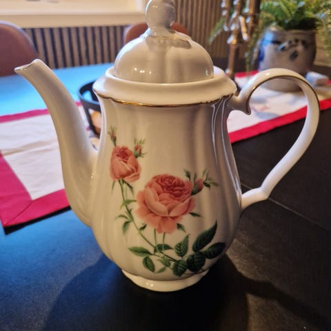 Porsgrund porselen kaffekanne med lokk hvit med bærmotiv