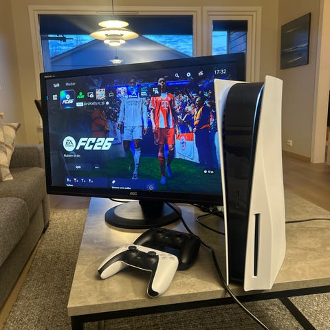 Selger en strøken PS5 disk med nesten ny kontroller (bare brukt noen timer). Konsollen har ingen synlige riper og er restartet og renset klar for neste eier:)