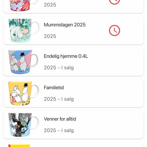 Moomin samlemynter gullfarget. Sett med tre mynter med motiv fra Mummiverdenen, levert i plastkapsler.