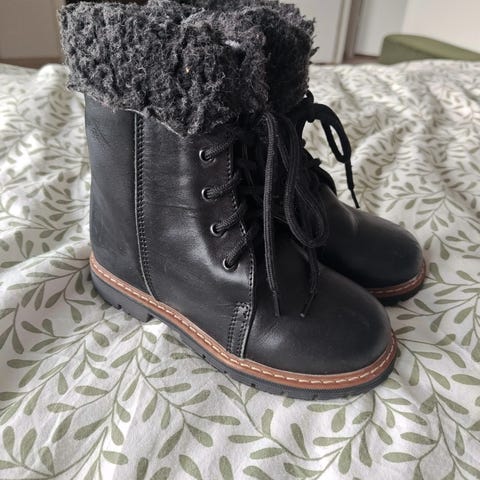Reima barnesko støvler i størrelse 29 for unisex. Svarte støvler med grov såle. Egnet som hverdagsfottøy i kjøligere og vått vær. Passer til barn som trenger solide sko til bruk i barnehage eller skole og til utelek. Støvler med hai på også str 29. 50kr pr. par.