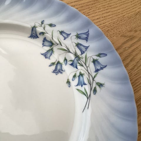 Porselen servisedeler med dompappmotiv blå og hvit fra firkløveren