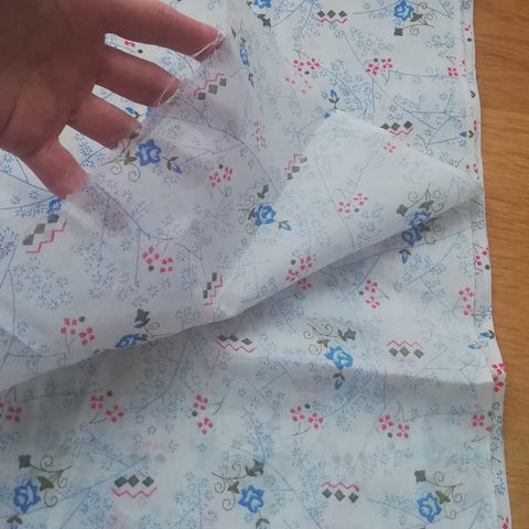 Flanell laken med blomstermønster i lilla og hvit. Fint til omsøm.