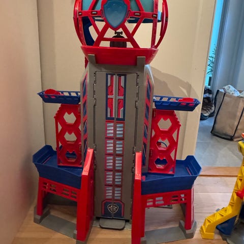 Tårnet mangler kikkert og paw patrol-emblemet. Sky mangler i sin bil.