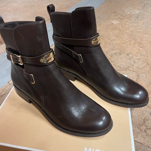 Dette er et par svarte snørestøvler med spenner fra merket Tom Tailor. De har både lisser foran og dekorative spennedetaljer rundt ankelen og skaftet, samt nagler langs sømmene. Støvlene har en robust såle.
