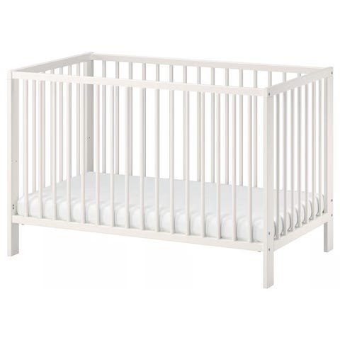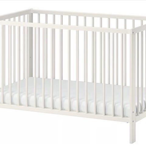 IKEA-sprinkelseng + madrass, sengehest og tre laken