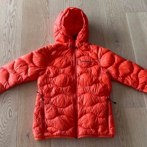 Peak Performance W Tomic Jacket dunjakke for dame i størrelse S. Jakken er grønn og fylt med dun. Den har hette, gjennomgående glidelås i front og glidelåslommer i sidene. Egnet som ytterjakke i kaldere vær og til hverdagsbruk eller utendørsaktiviteter.