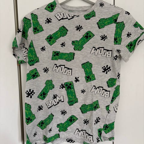 Svart jeans fra Kappahl til gutt i str 152 med t-skjorte i str 146-152 med Minecraft motiv.