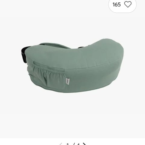 Yngri Mia ammepute i grønn farge. Ammeputen har justerbar høyde for å gi støtte ved amming og mating av baby. Den har praktisk justerbar rem som holder puten på plass, samt integrert lomme til småting som smokker eller kluter.