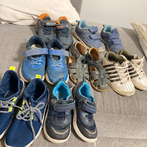 Nike joggesko for barn, unisex, i størrelse 35. Skoene er hovedsakelig svarte, med lave modeller som passer til hverdagsbruk og aktivitet. Egnet til både innendørs og utendørs bruk for barn i skolealder.