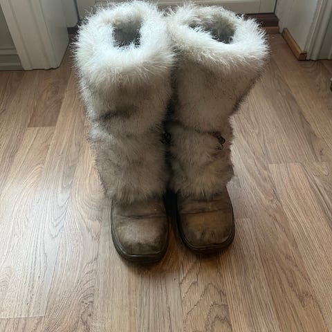 Pent og veldig lite brukt vintersko til dame. Semsket skinnimitasjon utenpå og mykt for innvendig. De er ikke vanntette.