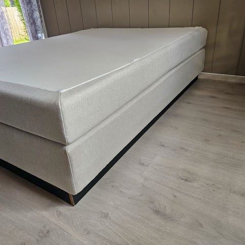 God Jensen seng med overmadrass. Sengen er i god stand, ingen synlige bruksmerker. Sengen består av to underdeler med bein og en overmadrass oppå. Nøytral lys grå tekstilfarge som passer inn i de fleste soverom. Egnet som dobbeltseng for to personer. Madrassene kan vendes om man ønsker fastere underlag. Mål på sengen er 150x200 cm. Overmadrass kan medfølge om ønskelig.