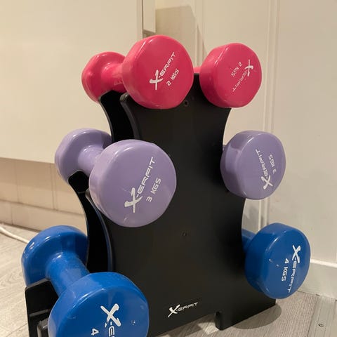 Selger et pent brukt sett med manualer og stativ. Settet inneholder 1 kg, 2 kg og 3 kg manualer. Lite brukt og i god stand. Perfekt til hjemmetrening og tar lite plass. Selges samlet.