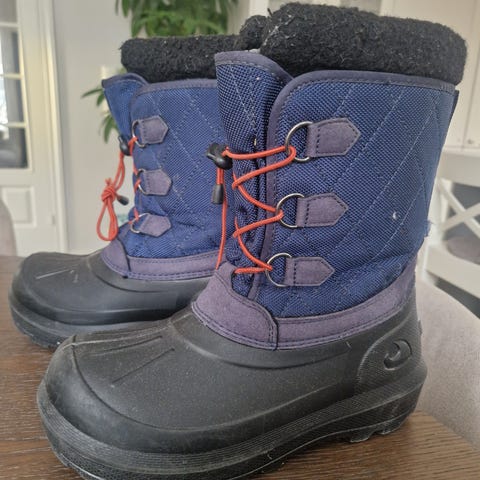 Gode, varme vintersko fra Frodda Barefoot i str. 33. Framstår pent brukt og lite slitasje med unntak av sålen bakerst på hælen. Barfotsko.