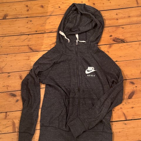 Nike Dri-Fit hettegenser i størrelse S. Mykt og behagelig stoff i gråmelert farge. Brukt en del, men i god stand.
