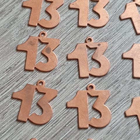 10 stk. smykkeanheng formet som frosker. Anhengene har en kobberfarget overflate. Usikker på om det er ekte kobber eller om det er et annet metall? Veier 41gr tilsammen (ca 4 gr hver?). De er ubrukte, men sikkert 20 år gamle +-. Noen av de trenger litt puss. Usikker på om alle flekker går vekk ved pussing, så det kan jeg ikke garantere.