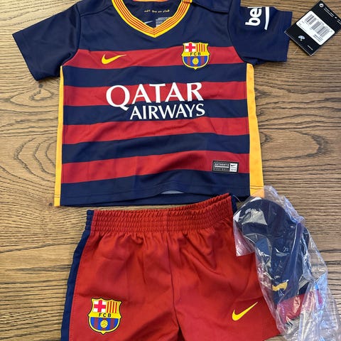 FC Barcelona Camp Nou 1957–2007 fotballdraktsett for barn. Sett med kortermet trøye og shorts i klubbens tradisjonelle røde og blå farger. Trøyen har vertikale striper, V-hals og brodert klubbemblem med Camp Nou 1957–2007-detalj på brystet, samt trykket UNICEF-logo foran. Shortsen er blå med elastisk linning og klubbemblem på det ene benet. Egnet til fotballspill, trening