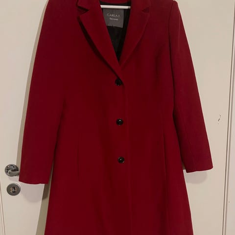 Ullkåpe i off white med struktur i stoffet. Noen få bruksmerker, men hel og fin. Kåpen er foret