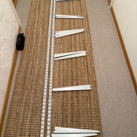 Selger to av disse fine glasshyllene som kun har stått i butikk og hatt noen hudpleieprodukter utstilt.