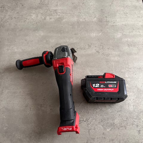 Milwaukee M18 vinkelsliper og bajonettsag med 12,0 Ah og 5,0 Ah batterier