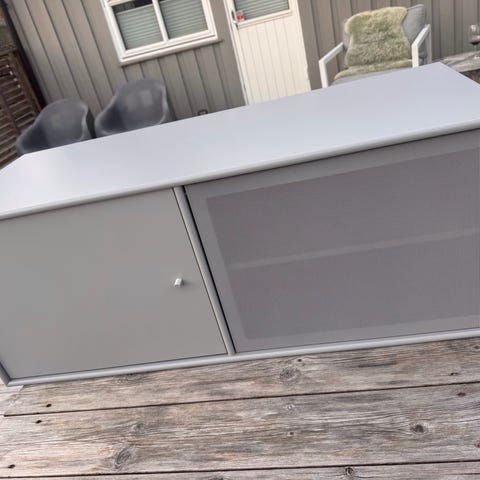 2 stk med plass til høytalere H24xL35xD31 og 2 stk med hyller og plass til utstyr H24x47xD31 cm.