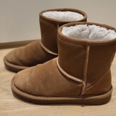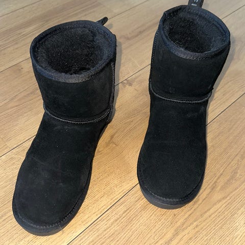 «Uggs» fra merket Xti str. 39. Brukt en halv sesong av jente før de ble for små. Litt trang/små i str. Mye bruk igjen. Impregnert med spray x 2.