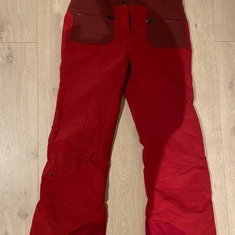 Burton snowboardbukse i størrelse M unisex. Buksa er rød og laget i teknisk materiale med Burtons Dryride-membran. Modellen har flere glidelåslommer, ventilasjonsglidelåser på lårene og snølås nederst ved beina. Justerbar linning for bedre passform. Egnet til snowboard og annen vintersport.