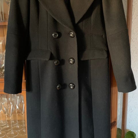 Kåpe i nydelig burgunderfarge, Den er fra i Warehouse. Kjøpt for noen år siden men ikke blitt brukt de siste årene. Kåpen er i ullblanding. Den er tynn, men passer for høst eller mildere vinterdager.