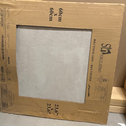 Har 5 uåpna pakker 5,4 m2 med 60x60 flis til overs,
