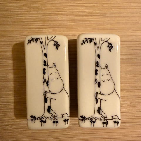 Fire krydderbøsser fra Arabia Finland. Alle er merket på finsk, svensk, engelsk og fransk med toppet i kork. Feilfri. Kan hentes på Majorstuen eller sendes.