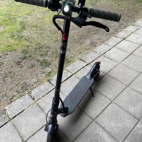 Dette er en eldre elsparkesykkel så man må forvente at batteriet har nedgradert. Jeg er på litt over 90kg og den fikk meg rundt 10km før den gikk tom, med balanse av oppover og nedover bakker. Dette var i sommer til tidlig høst. Vil få den kjapt bort ettersom jeg flytter.