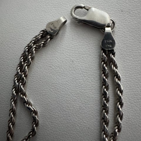 Sølv 925, vekt 18,34 g., lengde 52 cm., bredde 3 mm., håndlaget.
