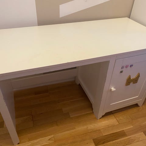 Skrivebord slitasje langs kanten. Hentes i Sandvika 160 cm langt, 60 cm dypt, 72 cm høyt