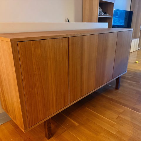 Hylleplatene er foliert i mørk brun trestruktur.