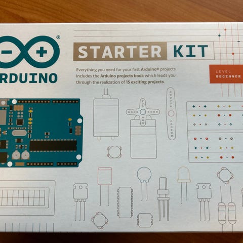 Arduino elektronikksett med ulike komponenter. Inneholder blant annet et Arduino-kort, breadboard, ledninger, motstander og diverse smådeler sortert i esker. Egnet til prototyping, enkle elektronikkprosjekter og læring av mikrokontrollerprogrammering og kretsteknikk.