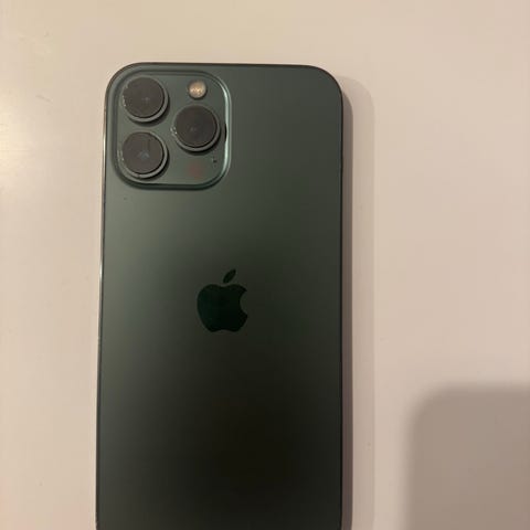 Apple iPhone 13 Pro smarttelefon med 256 GB lagringskapasitet. Fargen er pene Alpine green.