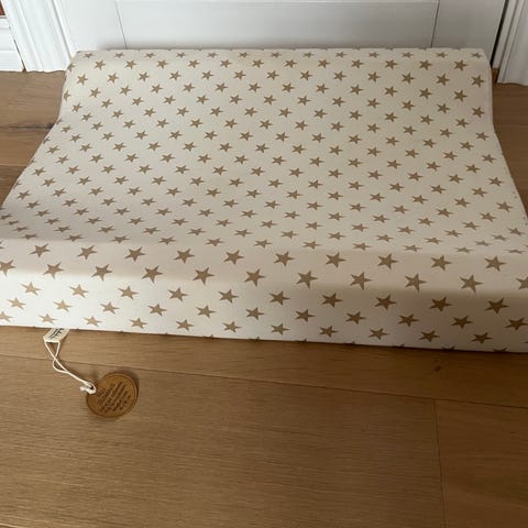 Yngri bedside crib selges ubrukt. Medfølger to laken, festebånd og transportbag.
