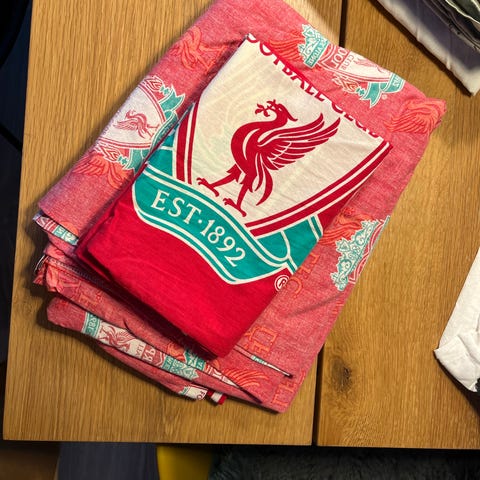 Dyne- og putetrekk, offisiell Liverpool merchandise. Ubrukt, men det ble vasket og lagt i skapet da det ble kjøpt.