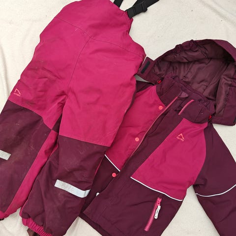 Color Kids Jake i størrelse 128 for jente farge kilka og rosa. Svart vinterbukse fra H&M. jakker har glidelås montert i to retninger, men den åpnes og lukkes bare i én retning som en tradisjonell jakke Jakken er en modifikasjon av en jumpsuit – den er varm og fungerer flott som et overgangsplagg