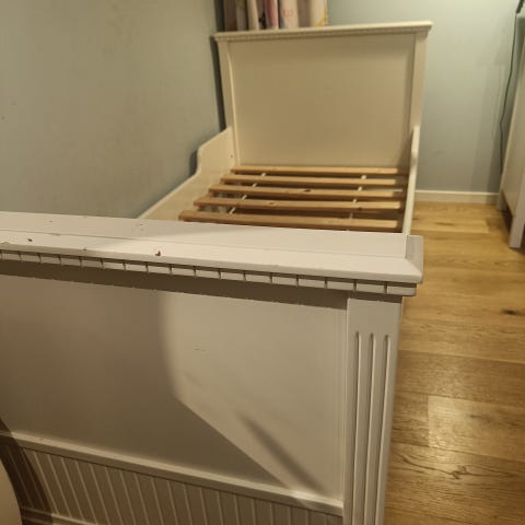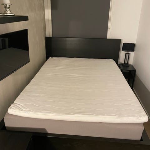 Ikea Malm seng med gavl og 2 oppbevaringsskuffer på hjul. Noen bruksmerker, men pent brukt. Kjøpt i 2020 for kr 3300 + madrass 140 x 200 cm. Madrassen kan medfølge om ønskelig, men er brukt så anbefaler rens.