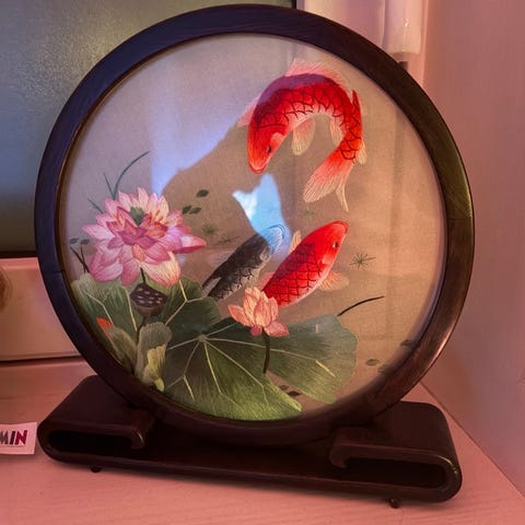 Suzhou-broderi er en tradisjonell kinesisk broderikunstart fra Suzhou i Jiangsu-provinsen, og regnes som en del av Kinas immaterielle kulturarv. Har en til i annet mønster dersom det er noe interesse.