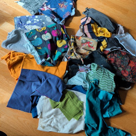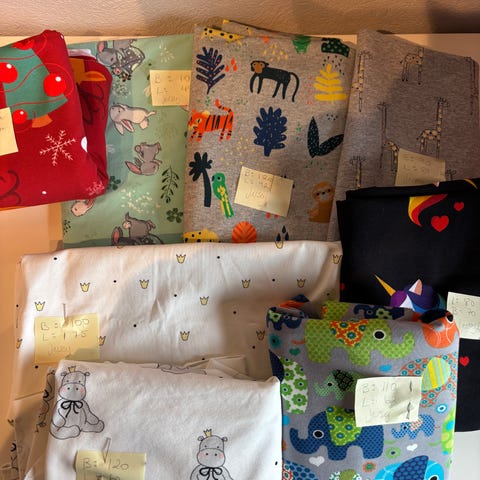 Selger ferdige stoffpakker med elastiske stoffer som jersey, french terry, isoli/sweat og ribb.