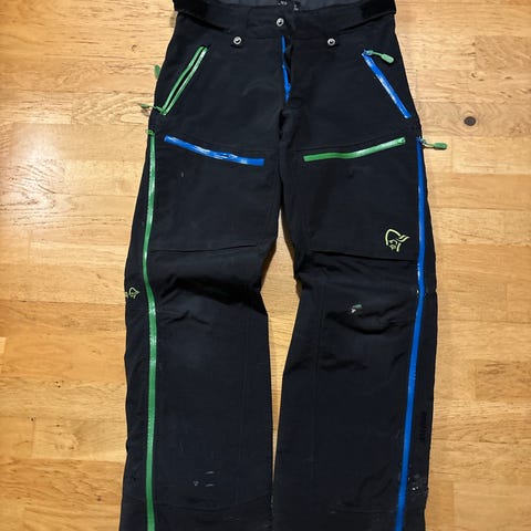 God skibukse til junior fra Norrøna. Størrelse 164. Buksen har fargeavskrapning på knær og rumpe, men ingen hull igjennom stoffet.