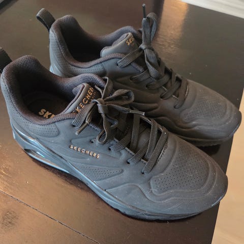 Skoene er bare brukt noen få dager på skolen da min datter fant ut at sko med litt kilehæler ikke var så lett å gå i.