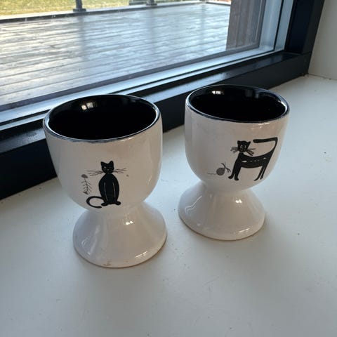To sjarmerende eggeglass i keramikk, formet som små fugler 🐦
